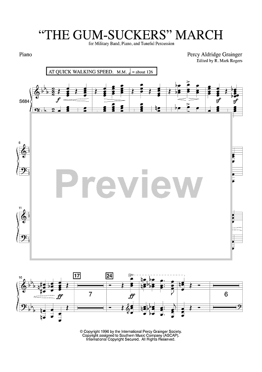 Digital Sheet Music for The Gum Suckers March - Piano by Percy Grainger, R. Mark Rogers scored for Concert Band; id:503539