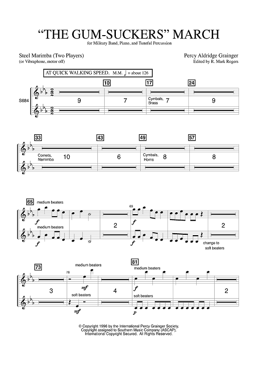 Digital Sheet Music for The Gum Suckers March - Vibraphone (Two Players) by Percy Grainger, R. Mark Rogers scored for Concert Band; id:503536