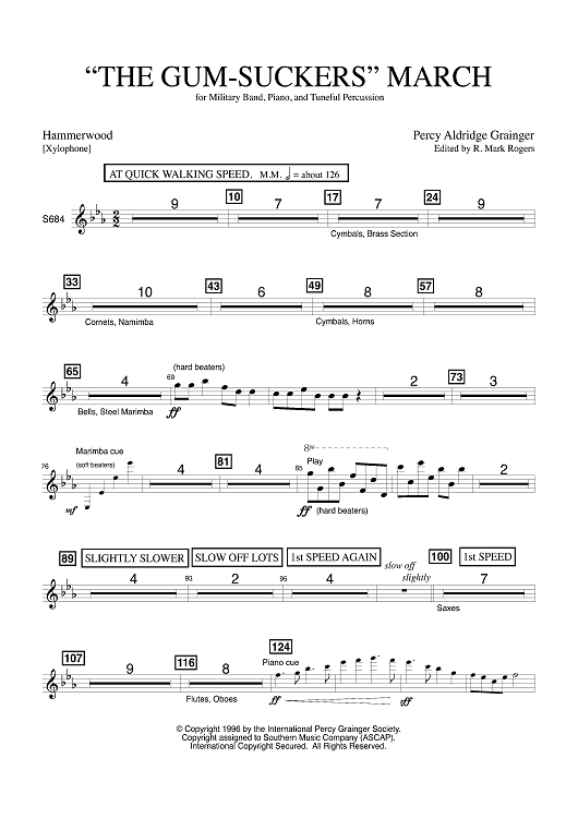 Digital Sheet Music for The Gum Suckers March - Xylophone by Percy Grainger, R. Mark Rogers scored for Concert Band; id:503533