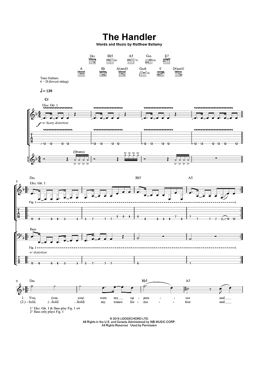 Digital Sheet Music for The Handler by Matthew Bellamy, Muse scored for Guitar Tab; id:453046
