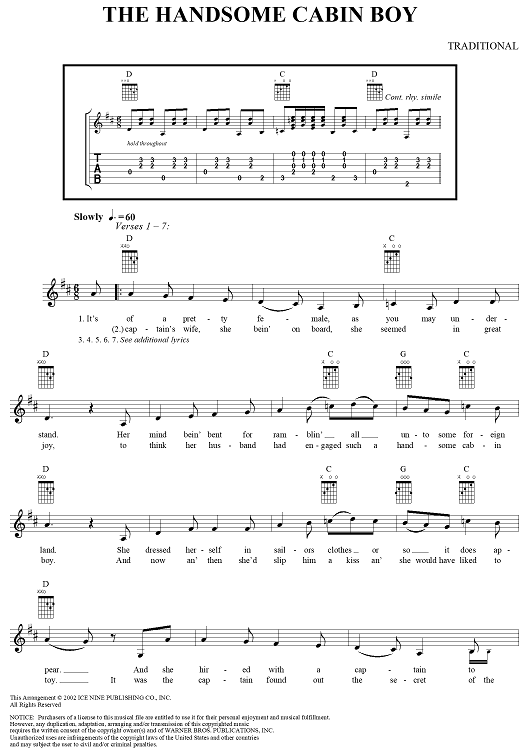 Digital Sheet Music for The Handsome Cabin Boy by Jerry Garcia, Traditional scored for Easy Guitar Tab/Vocal; id:291555