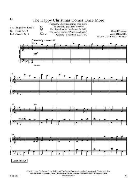 Digital Sheet Music for The Happy Christmas Comes Once More by , Gerald Peterson, Carl C. N. Balle scored for Organ Solo; id:437275