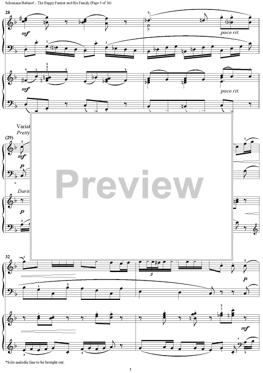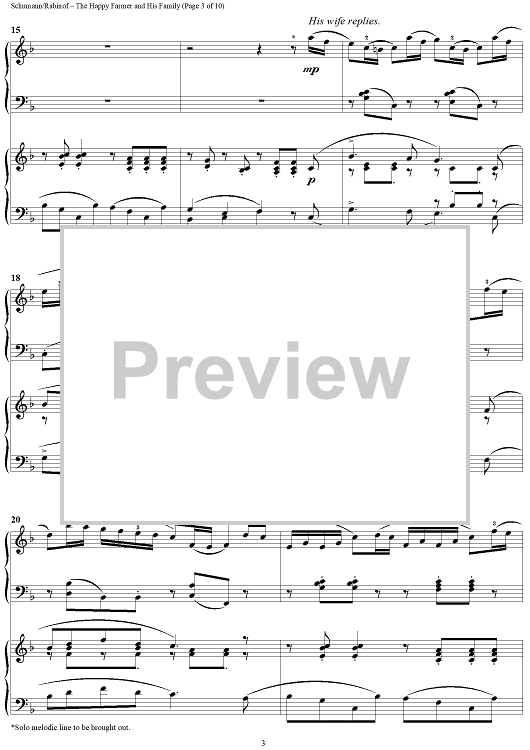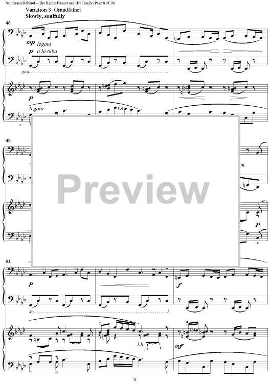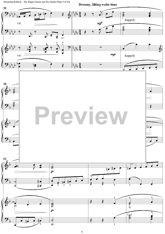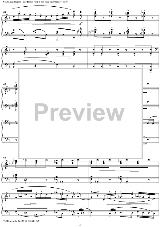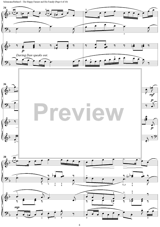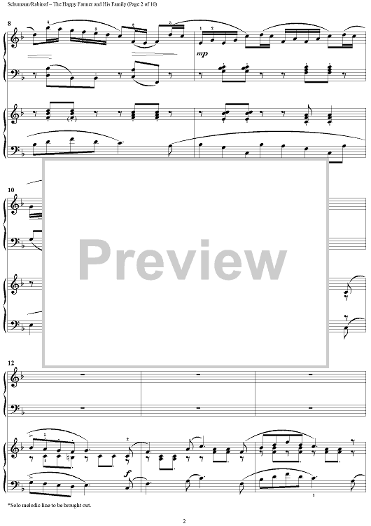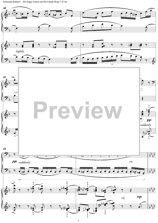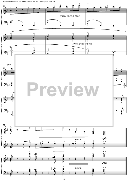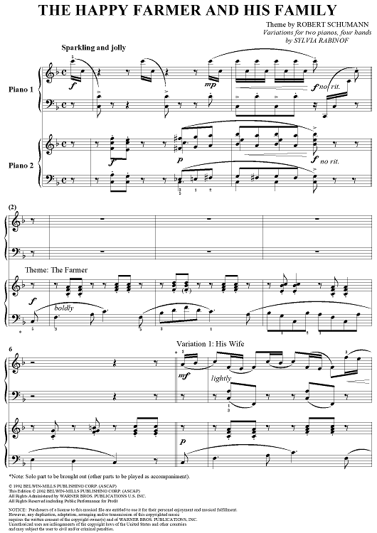 Digital Sheet Music for The Happy Farmer and His Family by Sylvia Rabinof, Robert Schumann scored for 2 Pianos, 4 Hands; id:290232