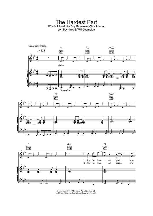 Digital Sheet Music for The Hardest Part by Chris Martin, Coldplay, Jonny Buckland, Guy Berryman scored for Piano/Vocal/Chords; id:384530