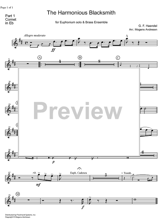 Digital Sheet Music for The Harmonious Blacksmith HWV 430 - E-flat Cornet by George Frideric Handel, Mogens Andresen scored for Euphonium/Brass Ensemble; id:322264