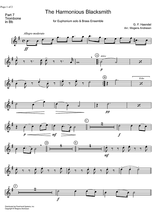 Digital Sheet Music for The Harmonious Blacksmith HWV 430 - Trombone in B-flat BC by George Frideric Handel, Mogens Andresen scored for Euphonium/Brass Ensemble; id:322280
