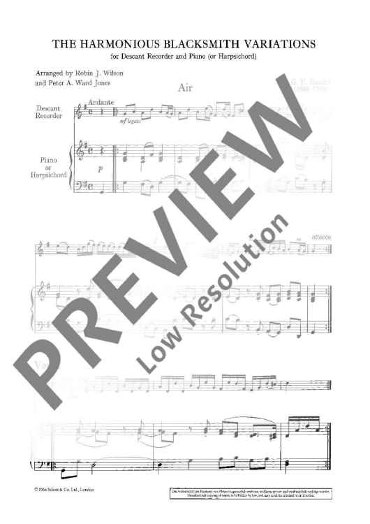 Digital Sheet Music for The Harmonious Blacksmith Variations by George Frideric Handel, Peter Ward Jones, Robin J. Wilson scored for Soprano Recorder And Piano; id:474476