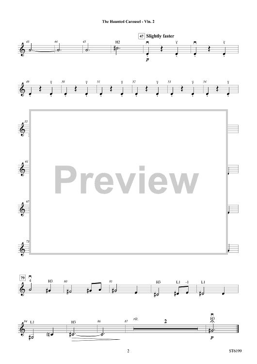 Digital Sheet Music for The Haunted Carousel - Violin 2 by Soon Hee Newbold scored for String Orchestra; id:441706