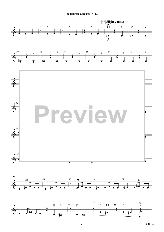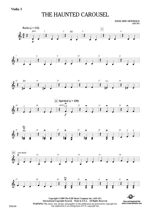 Digital Sheet Music for The Haunted Carousel - Violin 3 (Viola T.C.) by Soon Hee Newbold scored for String Orchestra; id:441707