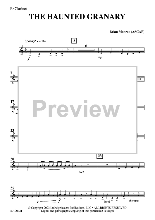 Digital Sheet Music for The Haunted Granary - Bb Clarinet by Brian Monroe scored for Concert Band; id:509888