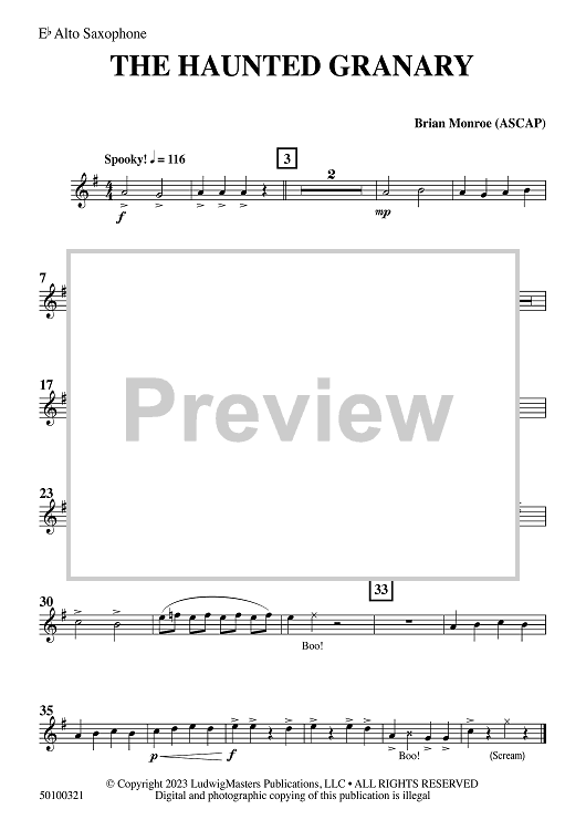 Digital Sheet Music for The Haunted Granary - Eb Alto Saxophone by Brian Monroe scored for Concert Band; id:509890