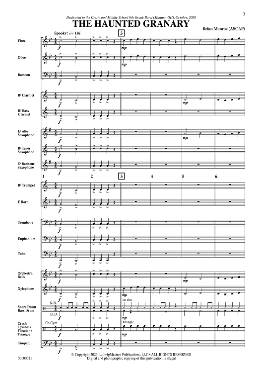 Digital Sheet Music for The Haunted Granary - Full Score by Brian Monroe scored for Concert Band; id:509884