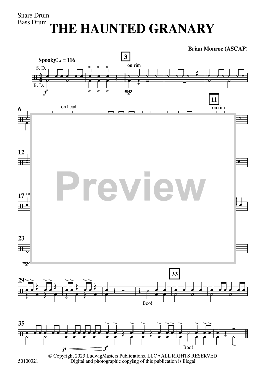 "The Haunted Granary - Snare Drum / Bass Drum" Sheet Music by Brian Monroe