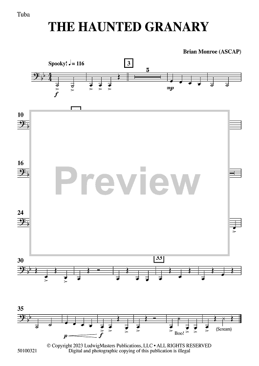 Digital Sheet Music for The Haunted Granary - Tuba by Brian Monroe scored for Concert Band; id:509898