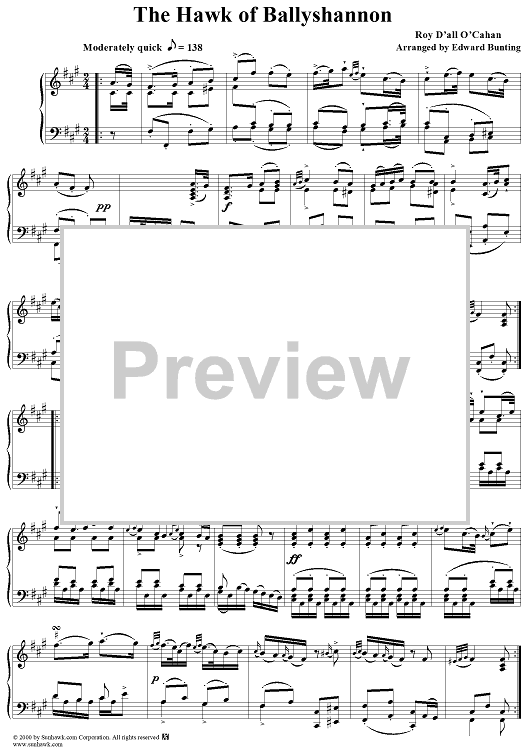 Digital Sheet Music for The Hawk of Ballyshannon by Edward Bunting, Rory Dall O'Cahan scored for Piano Solo; id:240307