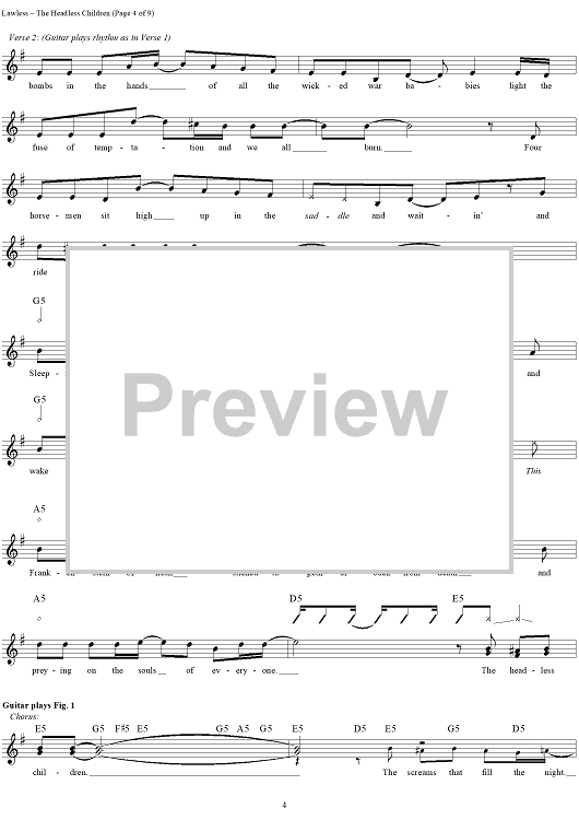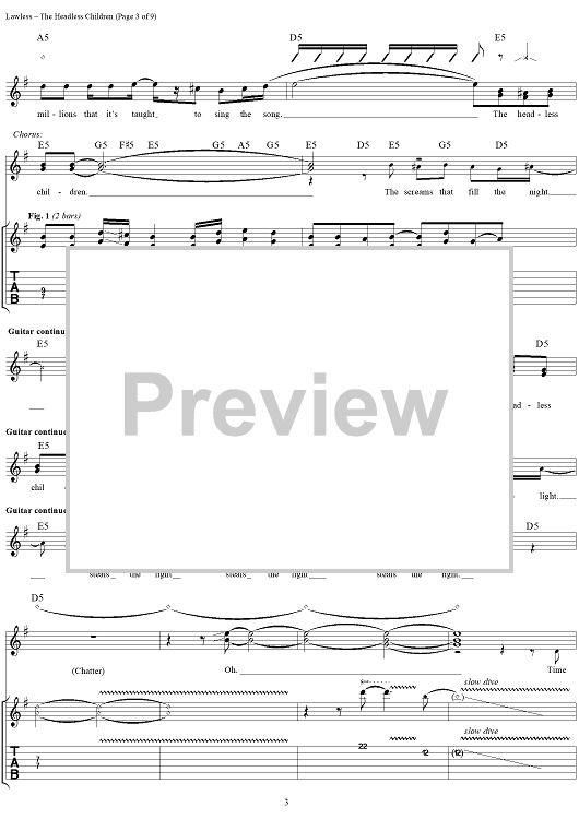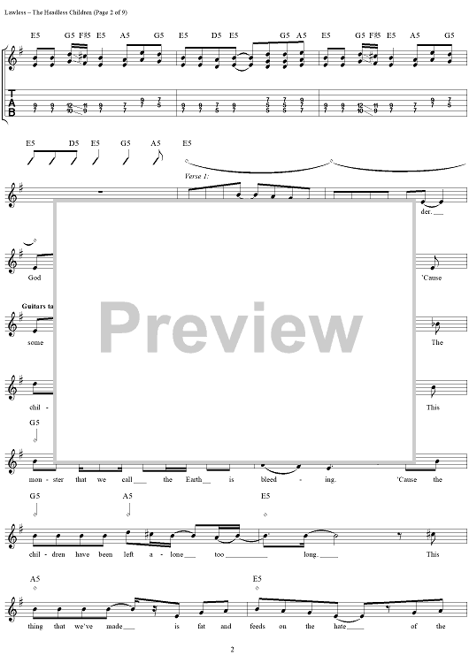 Digital Sheet Music for The Headless Children by Blackie Lawless, W.A.S.P. scored for Guitar Tab/Vocal; id:250368