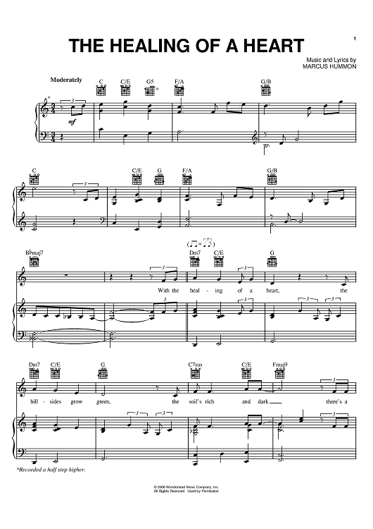 Digital Sheet Music for The Healing Of A Heart by Marcus Hummon, Anthony Callea scored for Piano/Vocal/Chords; id:389518