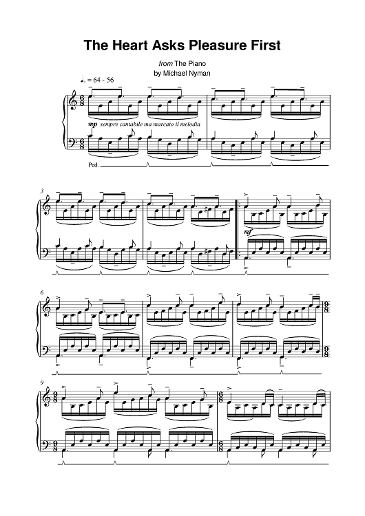 Digital Sheet Music for The Heart Asks Pleasure First by Michael Nyman scored for Piano; id:383261