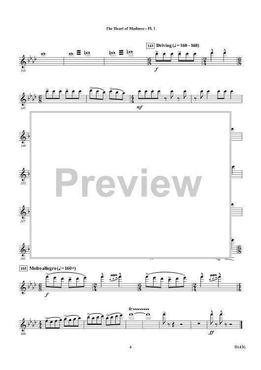 Digital Sheet Music for The Heart of Madness - Flute 1 by Mark Lortz scored for Concert Band; id:415679