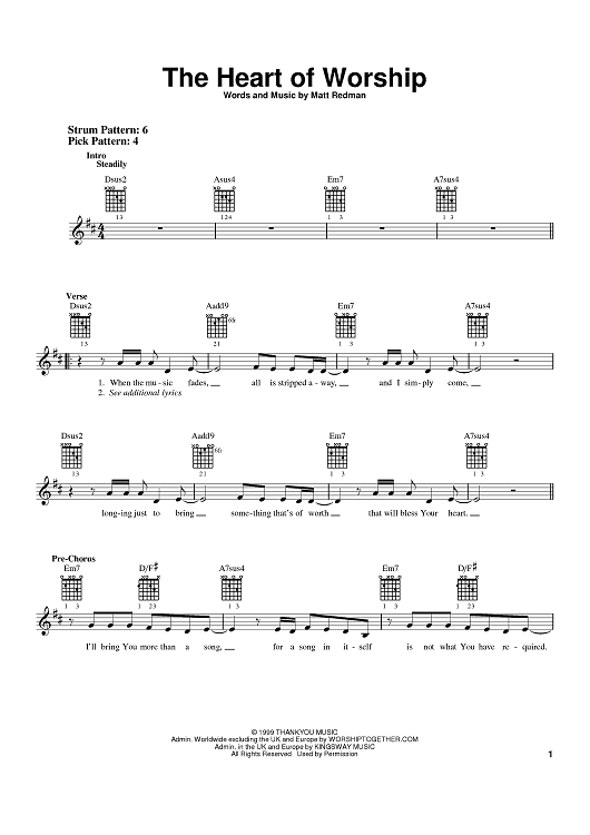 "The Heart Of Worship" Sheet Music by Matt Redman