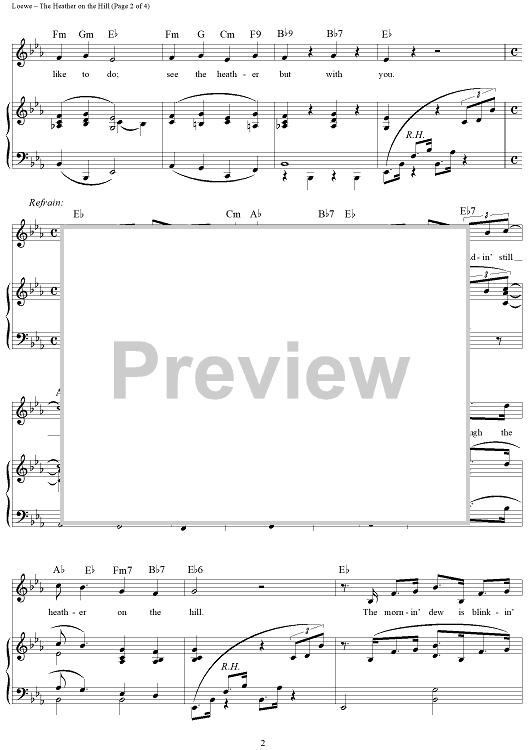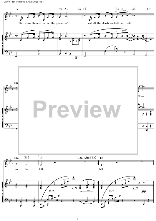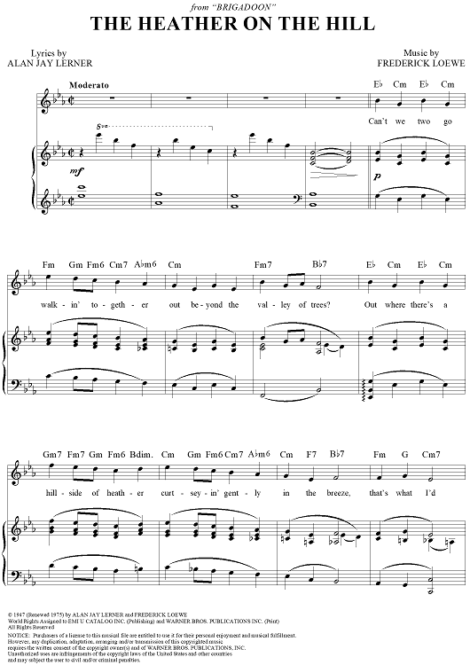 Digital Sheet Music for The Heather on the Hill by Gene Kelly, Frederick Loewe, Alan Jay Lerner scored for Piano/Vocal/Chords; id:112811