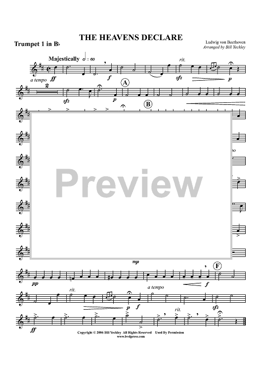 Digital Sheet Music for The Heavans Declare - Trumpet 1 in Bb by Ludwig van Beethoven, Bill Yeckley scored for Brass Quintet; id:428117