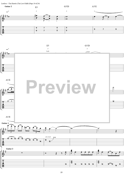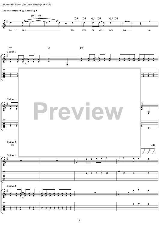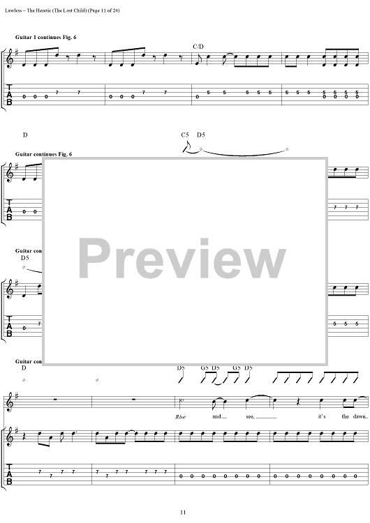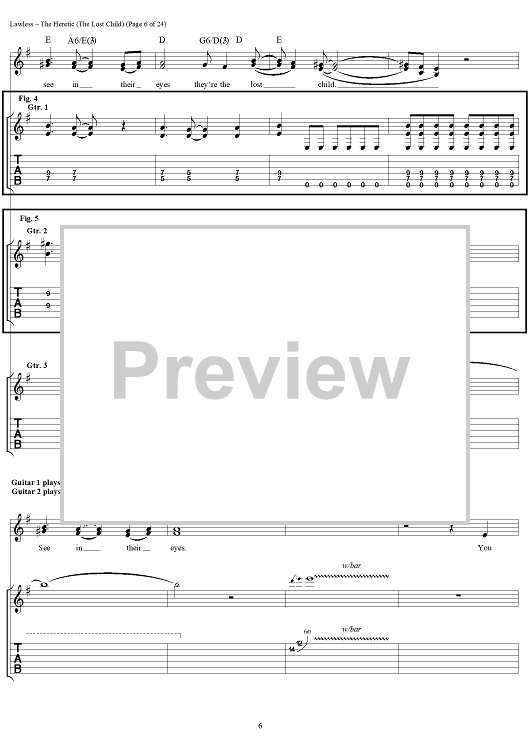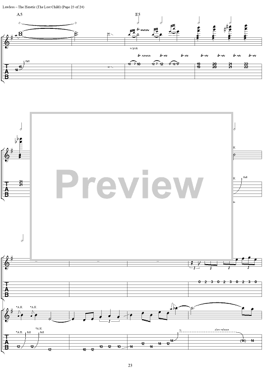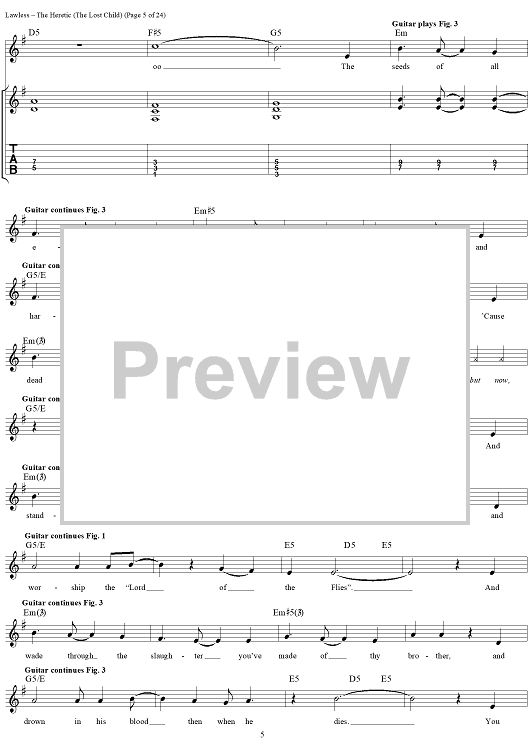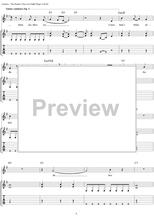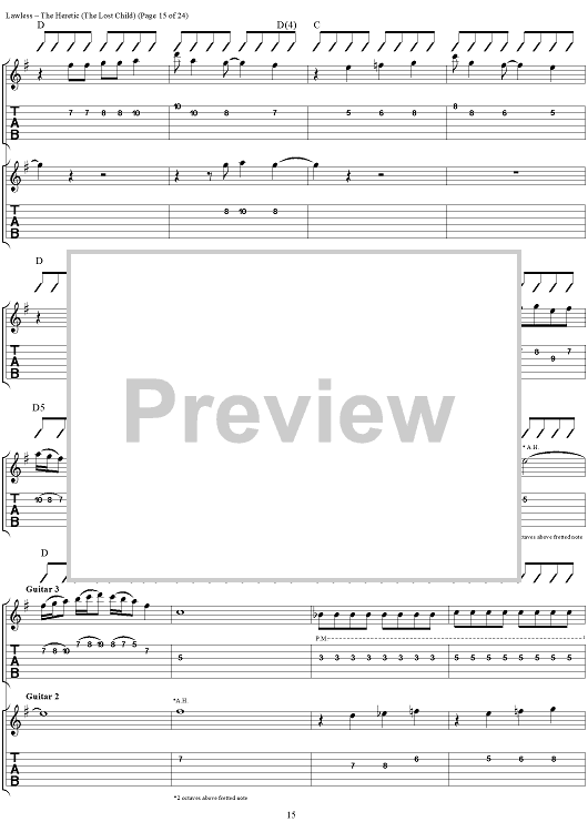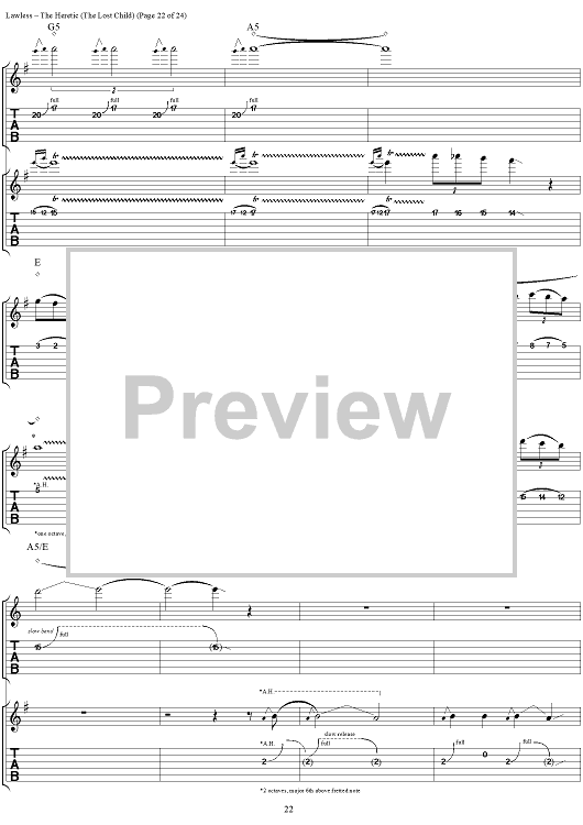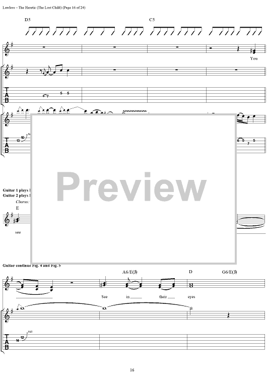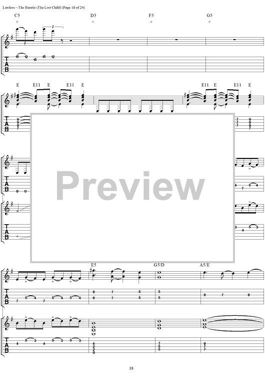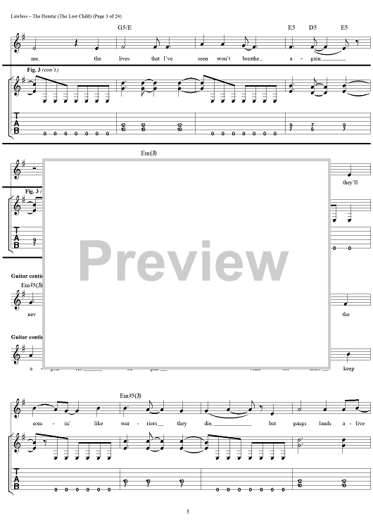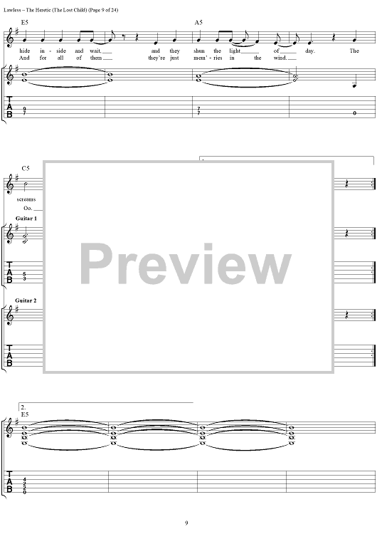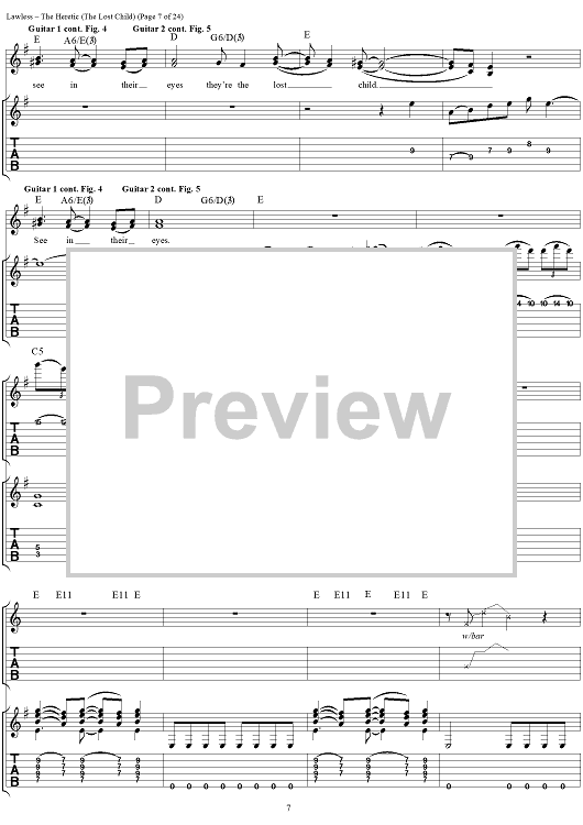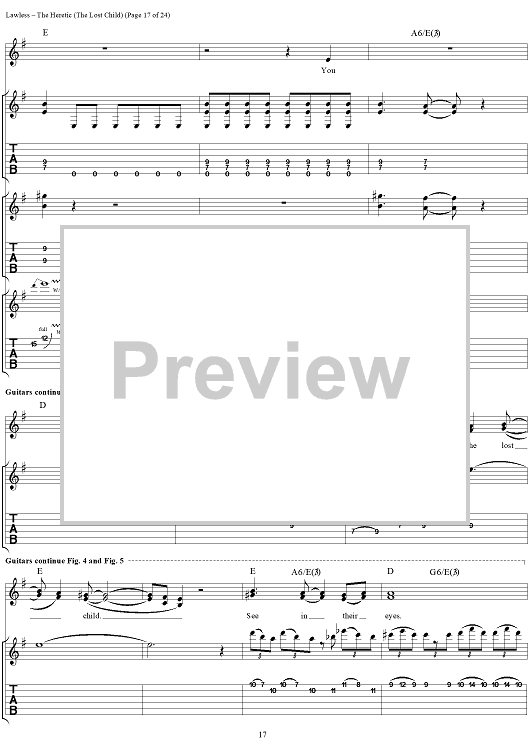 Digital Sheet Music for The Heretic (The Lost Child) by , Chris Holmes, Blackie Lawless, W.A.S.P. scored for Guitar Tab/Vocal; id:120136