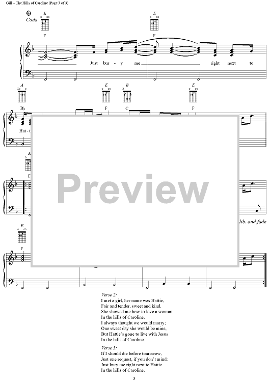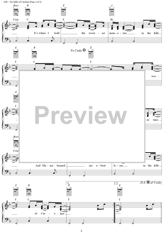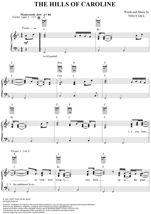 Digital Sheet Music for The Hills of Caroline by Vince Gill scored for Piano/Vocal/Chords; id:240921