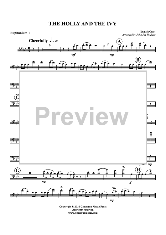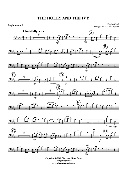 Digital Sheet Music for The Holly and the Ivy - Euphonium 1 BC/TC by John Jay Hilfiger, English Carol scored for Tuba Quartet; id:427261