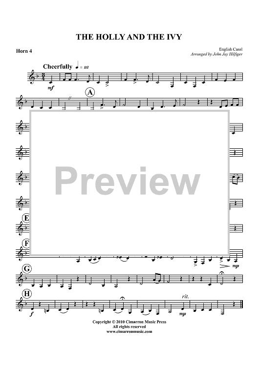 Digital Sheet Music for The Holly and the Ivy - Horn 4 in F by John Jay Hilfiger, English Carol scored for Horn Quartet; id:427460