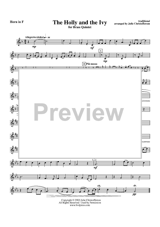 Digital Sheet Music for The Holly and the Ivy - Horn by Julie Christofferson, Traditional scored for Brass Quintet; id:312921
