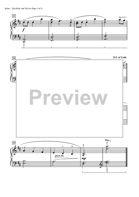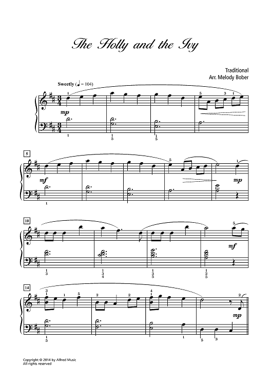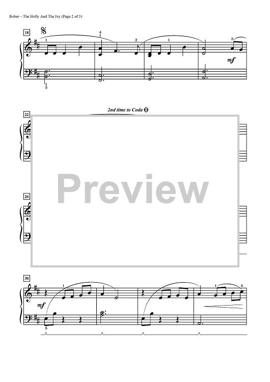 Digital Sheet Music for The Holly and the Ivy by Traditional, Melody Bober scored for Piano; id:462797