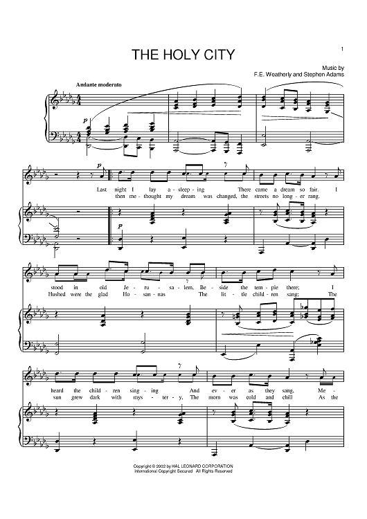 Digital Sheet Music for The Holy City by Stephen Adams, Frederic Weatherly scored for Piano/Vocal; id:369525