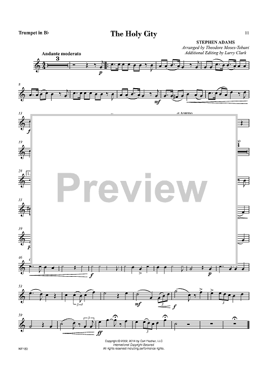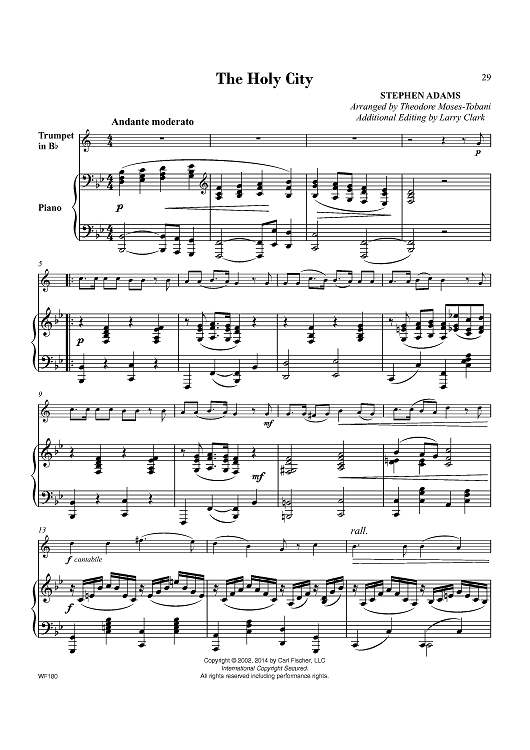 Digital Sheet Music for The Holy City by Theodore Moses Tobani, Stephen Adams scored for Bb Trumpet/Piano; id:451725