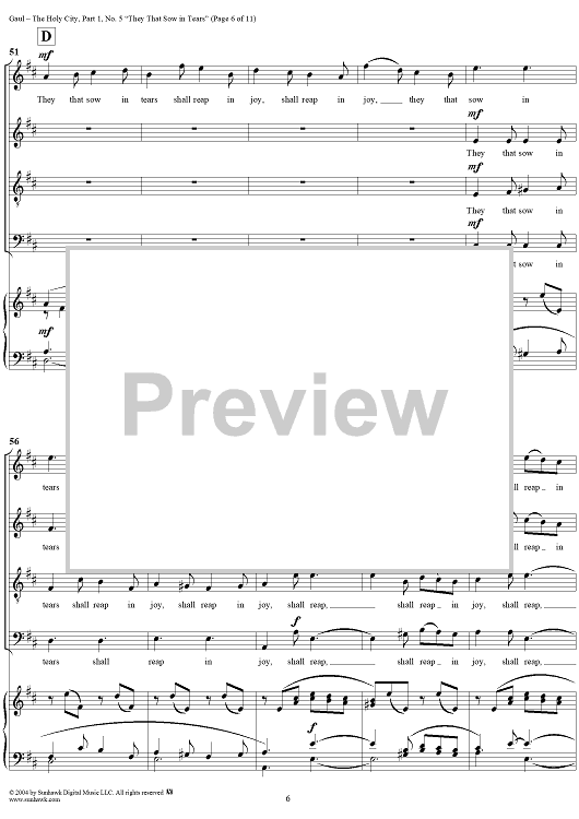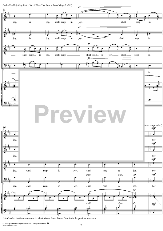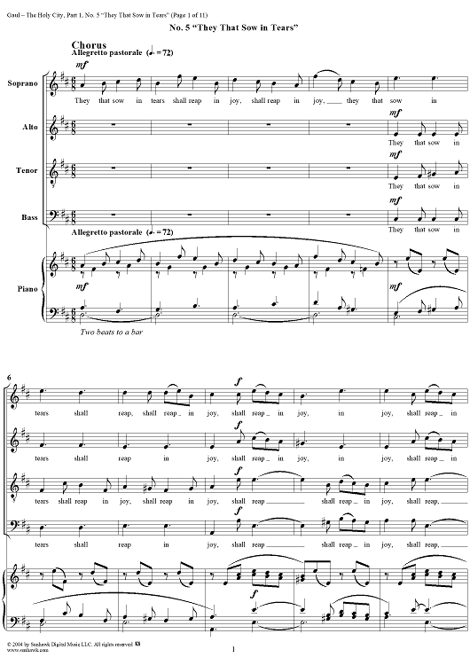 Digital Sheet Music for The Holy City: Part I. "Contemplation", No. 5, "They That Sow in Tears" by Alfred R. Gaul scored for Soli/SATB/Piano; id:304846