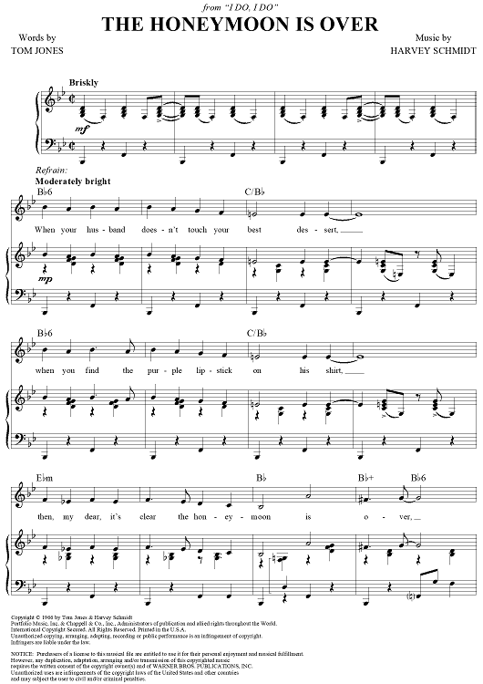 "The Honeymoon Is Over" Sheet Music by Harvey Schmidt