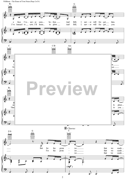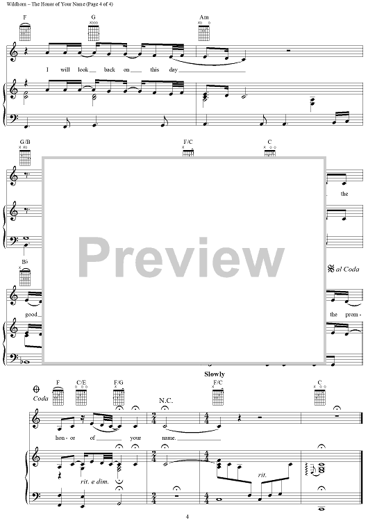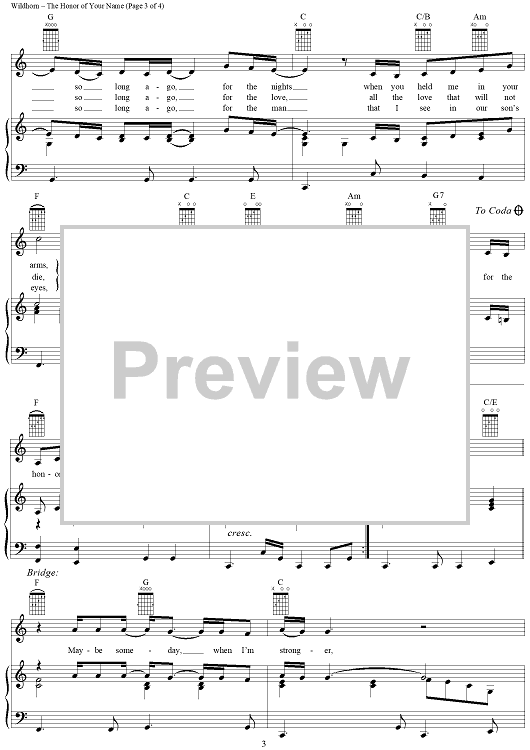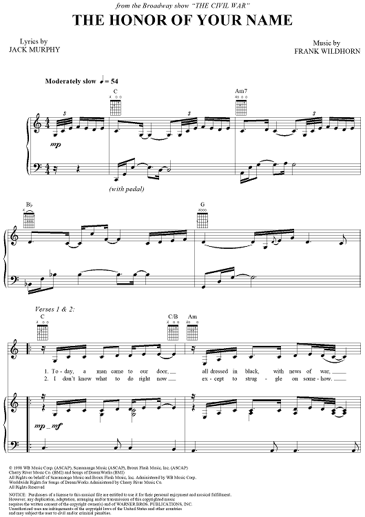 Digital Sheet Music for The Honor of Your Name by Trisha Yearwood, Frank Wildhorn, Jack Murphy scored for Piano/Vocal/Chords; id:124192