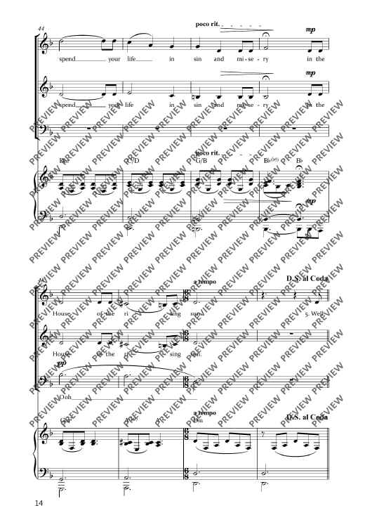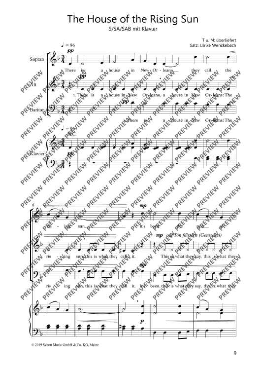 Digital Sheet Music for The House of the Rising Sun by Ulrike Wenckebach scored for Mixed Choir (sab) And Piano; id:499156