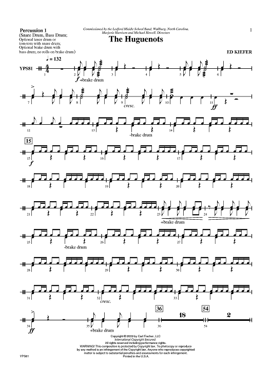 "The Huguenots - Percussion 1" Sheet Music by Ed Kiefer