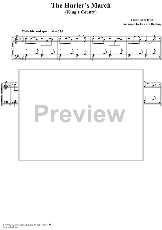 Digital Sheet Music for The Hurler's March by , Edward Bunting, Traditional scored for Piano Solo; id:234672