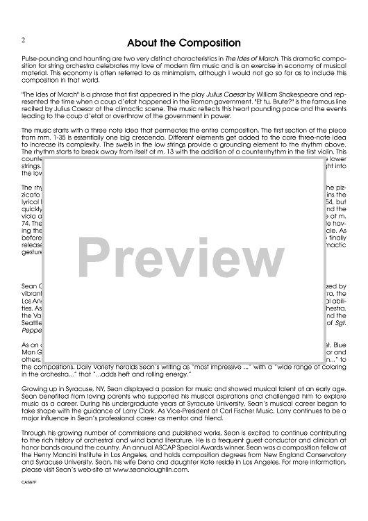 Digital Sheet Music for The Ides of March - Score by Sean O'Loughlin scored for String Orchestra; id:434955