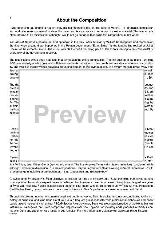 Digital Sheet Music for The Ides of March - Score by Sean O'Loughlin scored for Concert Band; id:435643