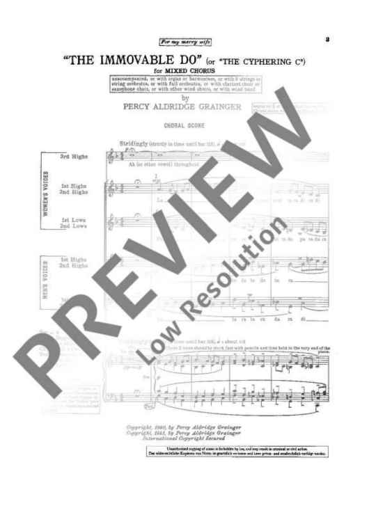 "The Immovable Do - Choral Score" Sheet Music by George Percy Aldridge Grainger