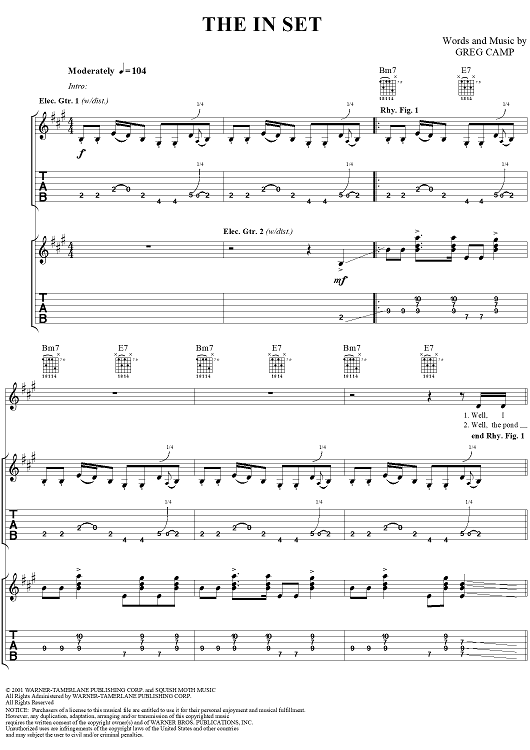 Digital Sheet Music for The In Set by Smash Mouth, Greg Camp scored for Guitar Tab/Vocal; id:288841