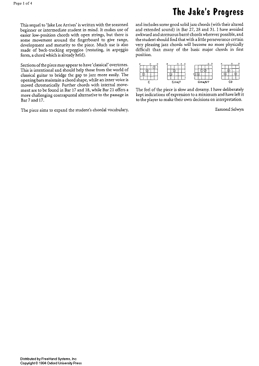Digital Sheet Music for The Jake's Progress - Notes by , Esmond Selwyn scored for Guitar; id:349246