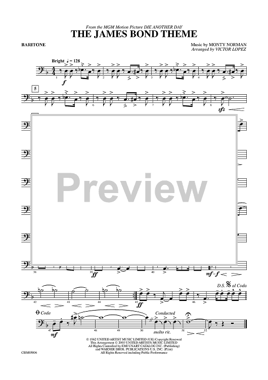Digital Sheet Music for The James Bond Theme - Baritone by Victor Lopez, Monty Norman scored for Concert Band; id:315198