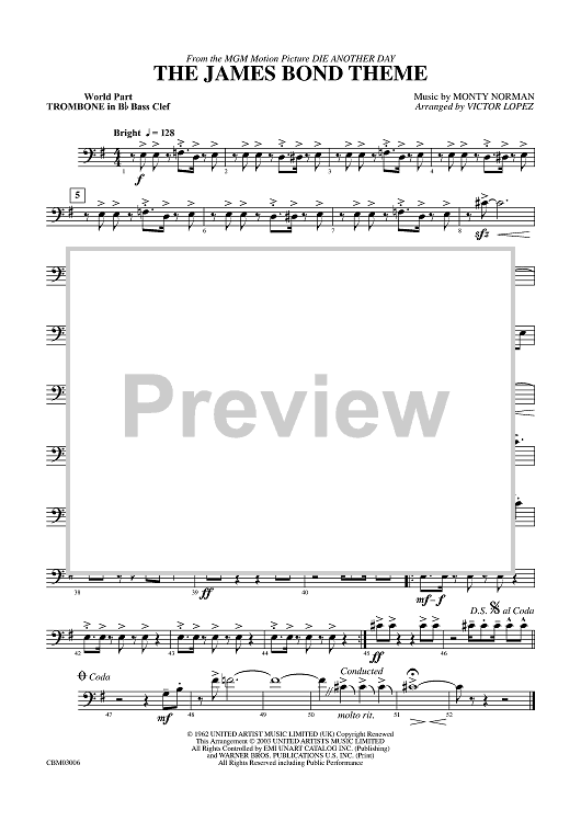 "The James Bond Theme - Trombone in B-flat BC" Sheet Music by Monty Norman