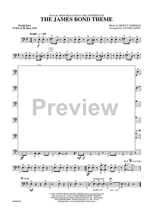 "The James Bond Theme - Tuba in B-flat BC" Sheet Music by Monty Norman