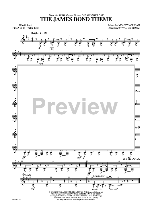 "The James Bond Theme - Tuba in E-flat TC" Sheet Music by Monty Norman