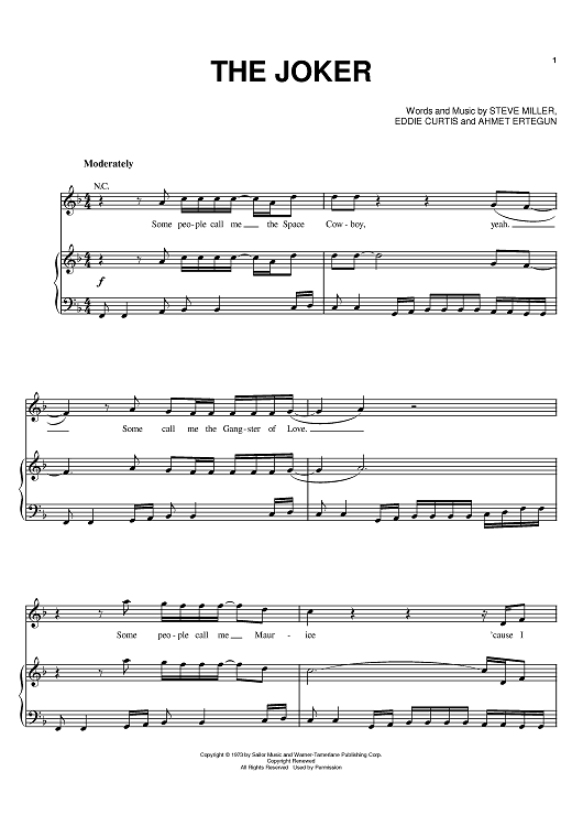 Digital Sheet Music for The Joker by Steve Miller, Eddie Curtis, Ahmet Ertegun, K.D. Lang, Steve Miller Band scored for Piano/Vocal/Chords; id:386268